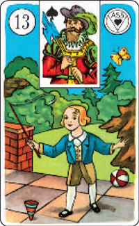 Einzeldeutung: natürlich haben sie Grund zur guten Laune, denn das was sie sich vornehmen, oder planen nimmt ein gutes ende mit dieser karte, denn diese karte ist eine Glückskarte